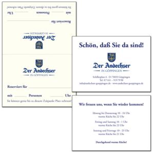 Visitenkarten, Geschäftspapier, Schilder, Speisenkarten, Stempel